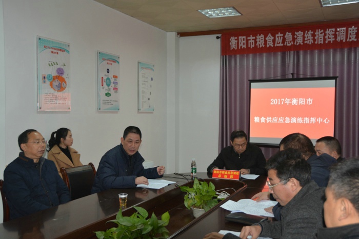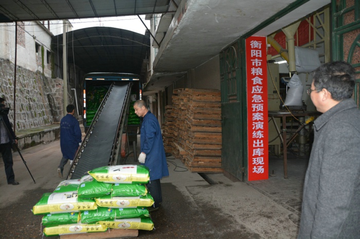 演练采取桌面推演与实战模拟相结合的方式进行,以我市遭受了50年不遇的特大自然灾害,造成市场粮食供应不足,市区粮食价格上涨,出现抢购风潮为背景。在此情况下,衡阳市政府迅速启动粮食应急供应预案,并上报湖南省粮食局,省市粮食应急指挥部采取相应应对措施,命令衡阳市金雁粮食购销有限公司紧急加工2000吨大米,并迅速投放市场,确保粮食供应,平抑市场粮价,消除市场恐慌。
