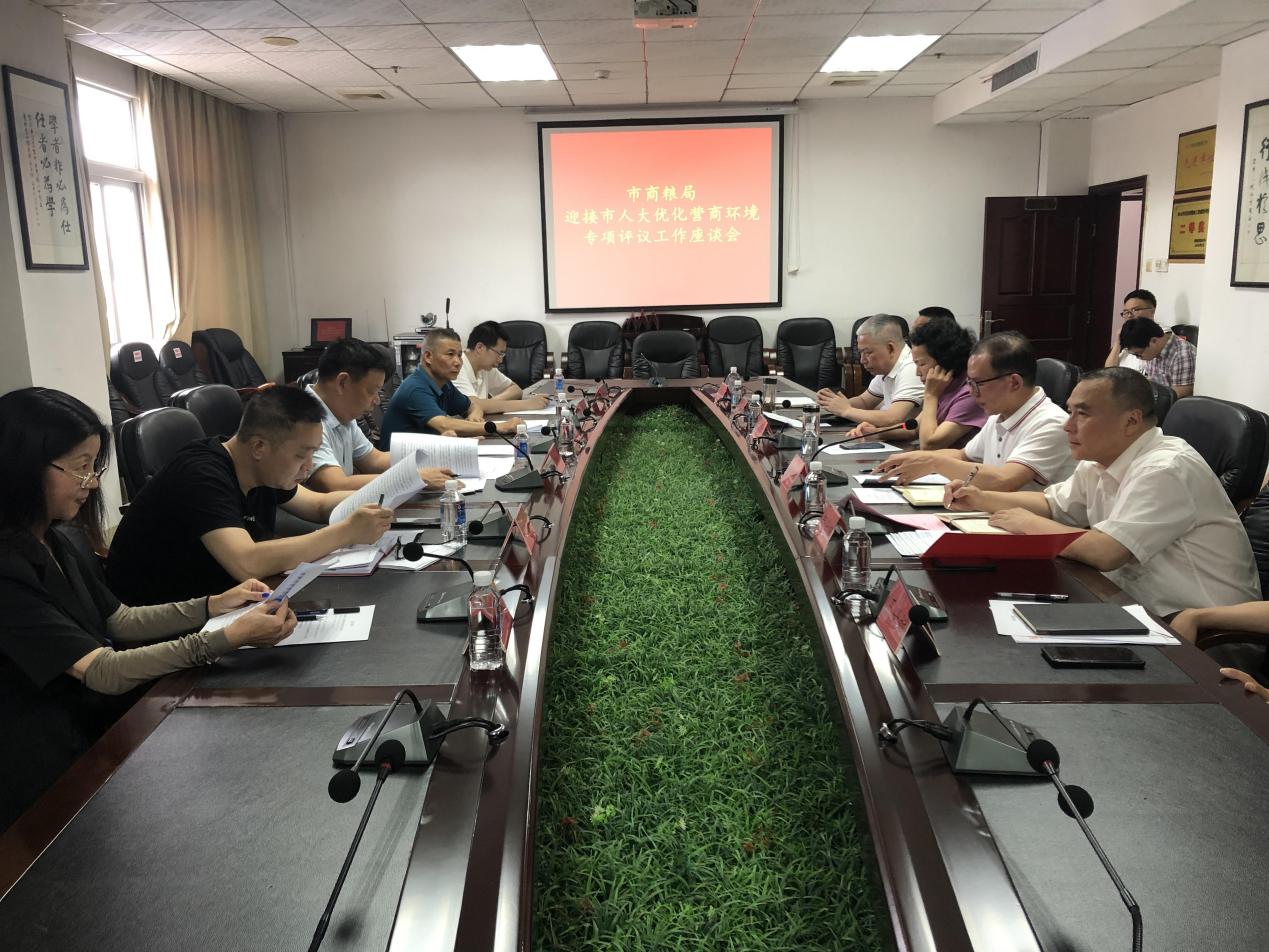 6月16日下午,市商粮局召开迎接市人大营商环境评议工作座谈会,会议由市人大教科文卫委主任贺熙欢主持,市商粮局在家领导、相关科室负责人及企业代表出席会议。