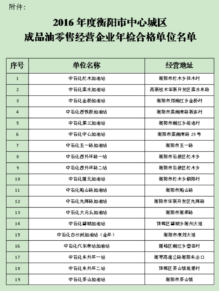 附件:2016年度衡阳市中心城区成品油零售经营企业年检合格单位名单