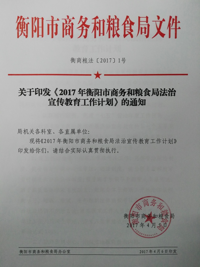 2017年衡阳市商务和粮食局法治宣传教育工作计划