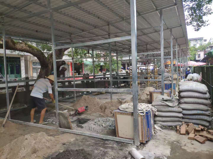 自“创卫”工作开展以来,南岳区严格按照“创卫”检查要求,全面推进市场改造提升。一是领导重视,分工明确。南岳区委、区政府高度重视农贸市场改造工作,区委书记曾建华、区长王燕曾多次现场调研,召开三次专题调度会,二次现场办公会,统一思想,提高认识,明确任务,落实措施。并委托主管商务工作的副区长旷慧忠同志全权代表区委区政府举全区之力,在财力全力保障的前提下,高标准、高质量、高品质地打造好迎宾市场;求实际、求落实、求民生做好老农贸市场改造。二是量身设计,完善方案。区商务局在充分调研并尊重民意的基础上,与广州博厦建筑设计研究有限公司徐州第一分公司进行了反复沟通和现场勘察,切合实际及时制定了整改方案,出台改造设计方案,并组织相关部门召开专题会议,对设计方案提出了修改意见。另外,结合工作开展情况制定了责任清单,并将清单内容逐条细化分解为具体的、可操作的工作举措,明确责任人和完成时限。区商务局(市场服务中心)牵头进驻市场、加班加点、全力以赴推进市场改造。三是迅速行动,措施得力。迎宾市场整改从8月1日起施工队进场,随着改造工作不断深入推进,目前已完成的工程量为①市场四周雨棚的统一制作;②市场四周沟圳翻新;③四厅的水产和活禽宰杀已拆除,部分摊位已新建;④一二厅蔬菜厅摊位改造全面启动;⑤从莲花路至迎宾市场的油路铺设已开始;⑥弱电线路改造已进场;⑦市场门头正在赶制中。老市场整改从8月15起施工队进场,当前已完成:①门头粉刷一新;②大型宣传牌已到位;③水产鱼池改造已完成50%;④活禽宰杀三分离移至沿河路的工作正在紧锣密鼓中,简易棚子已搭好,四周排污设施已落实;⑤周边门店的广告门头已落实70%;⑥沿河路临时市场招牌正在赶制中。