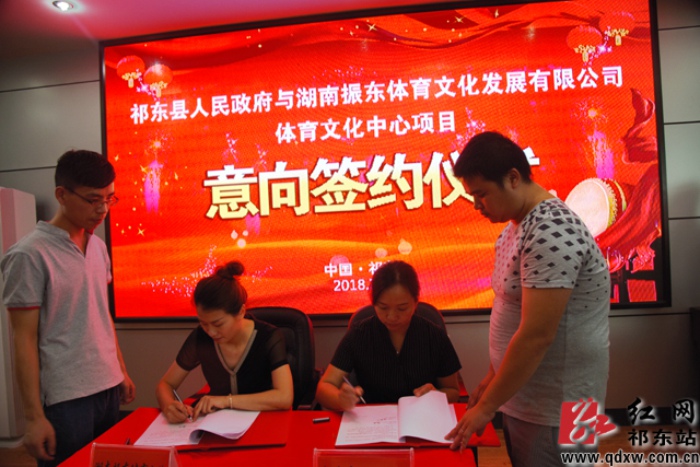 随后,副县长高瑛代表祁东县人民政府与湖南振东体育文化发展有限公司董事长陈艳红签订了意向合作协议。