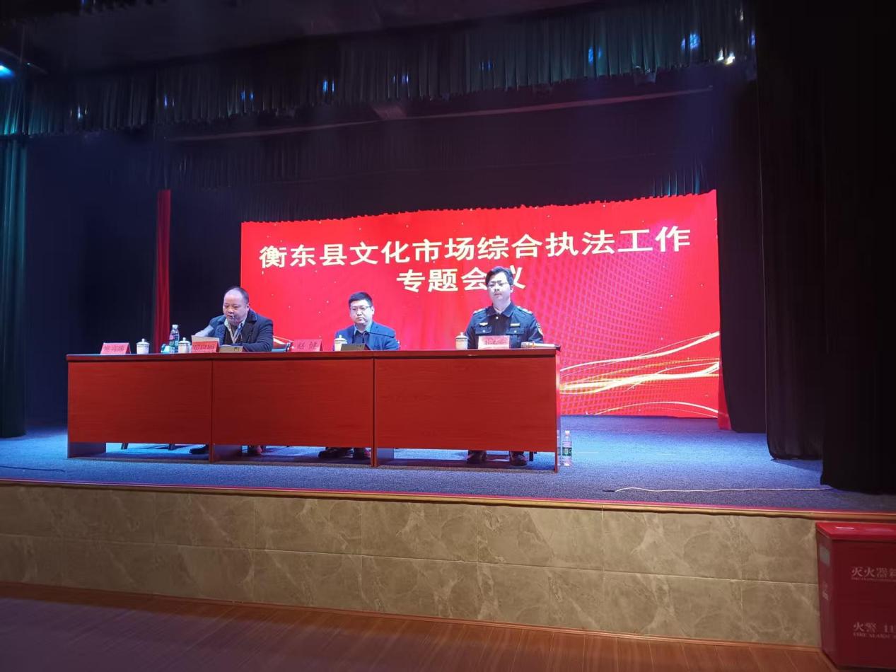 2026年2月5日下午,衡东县召开文化市场综合行政执法工作专题会议,旨在进一步规范市场经营秩序,增强合法经营意识,筑牢文化安全和生产安全防线,有效防范"两节两会"及文旅消费旺季各类风险,推动全县文旅产业高质量发展。