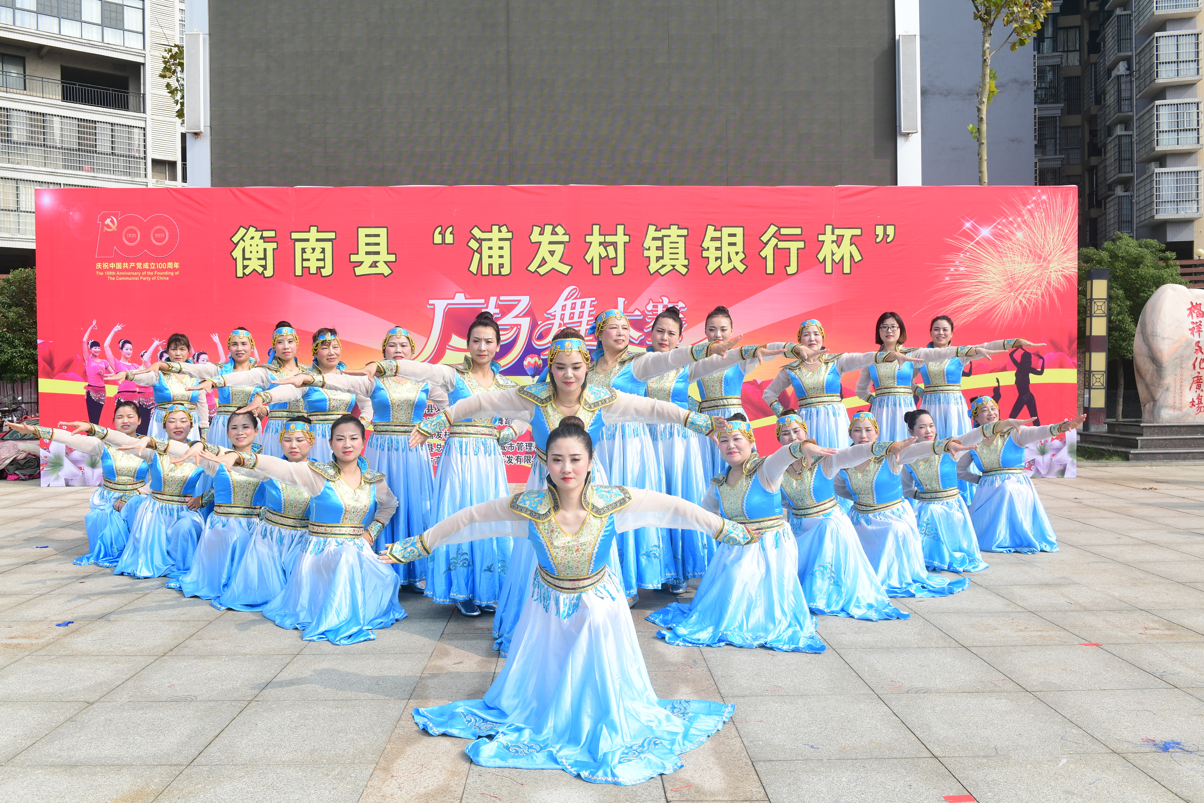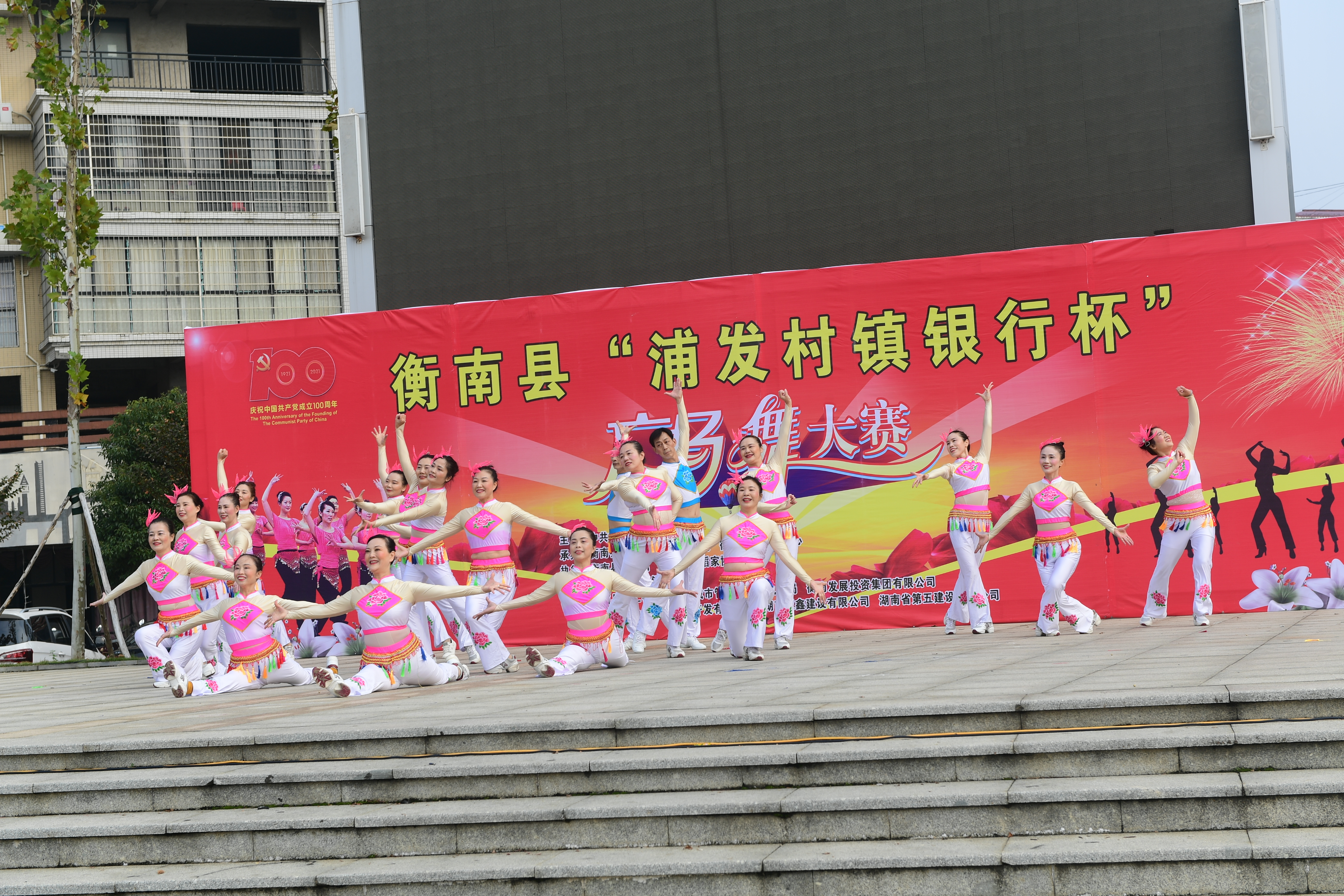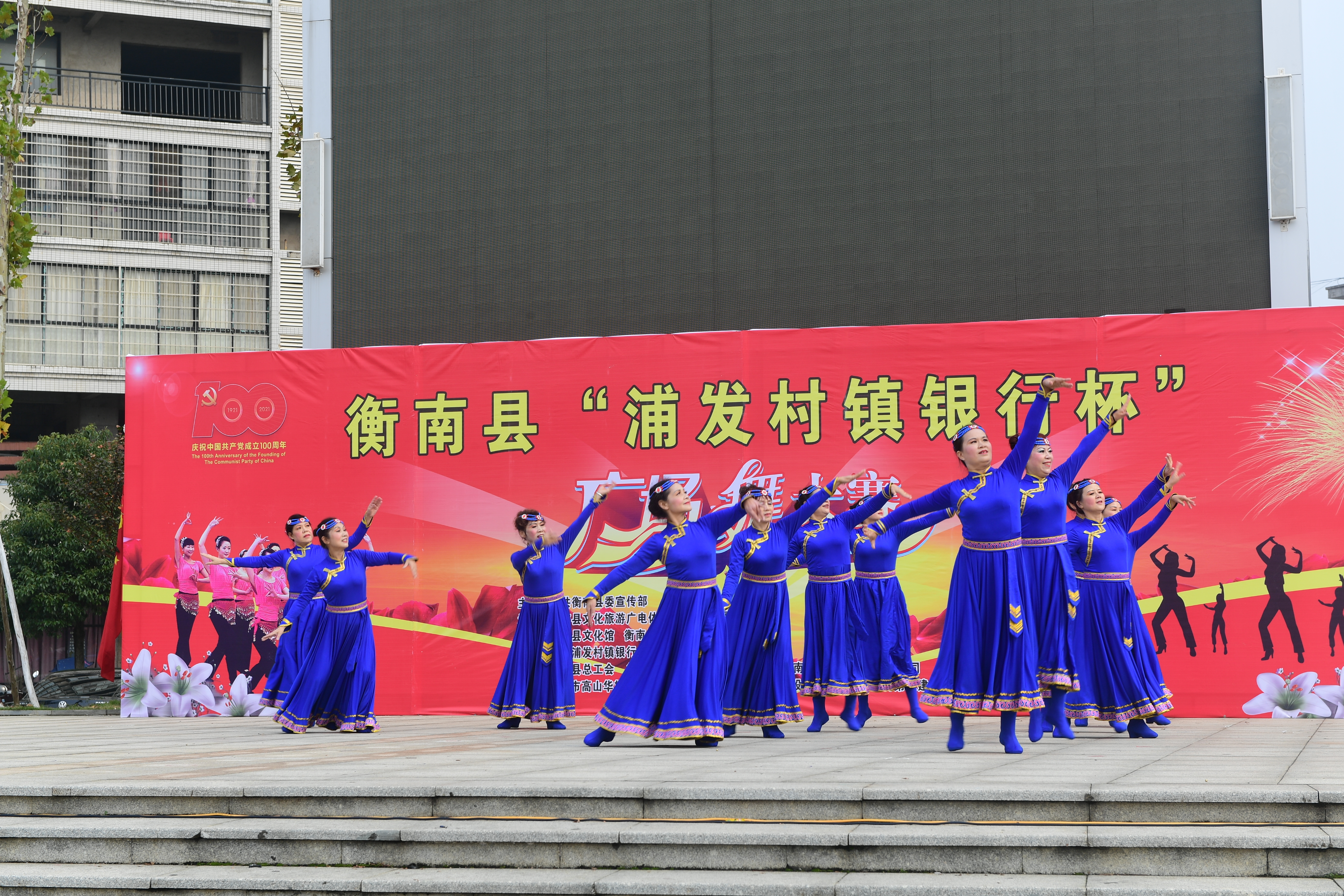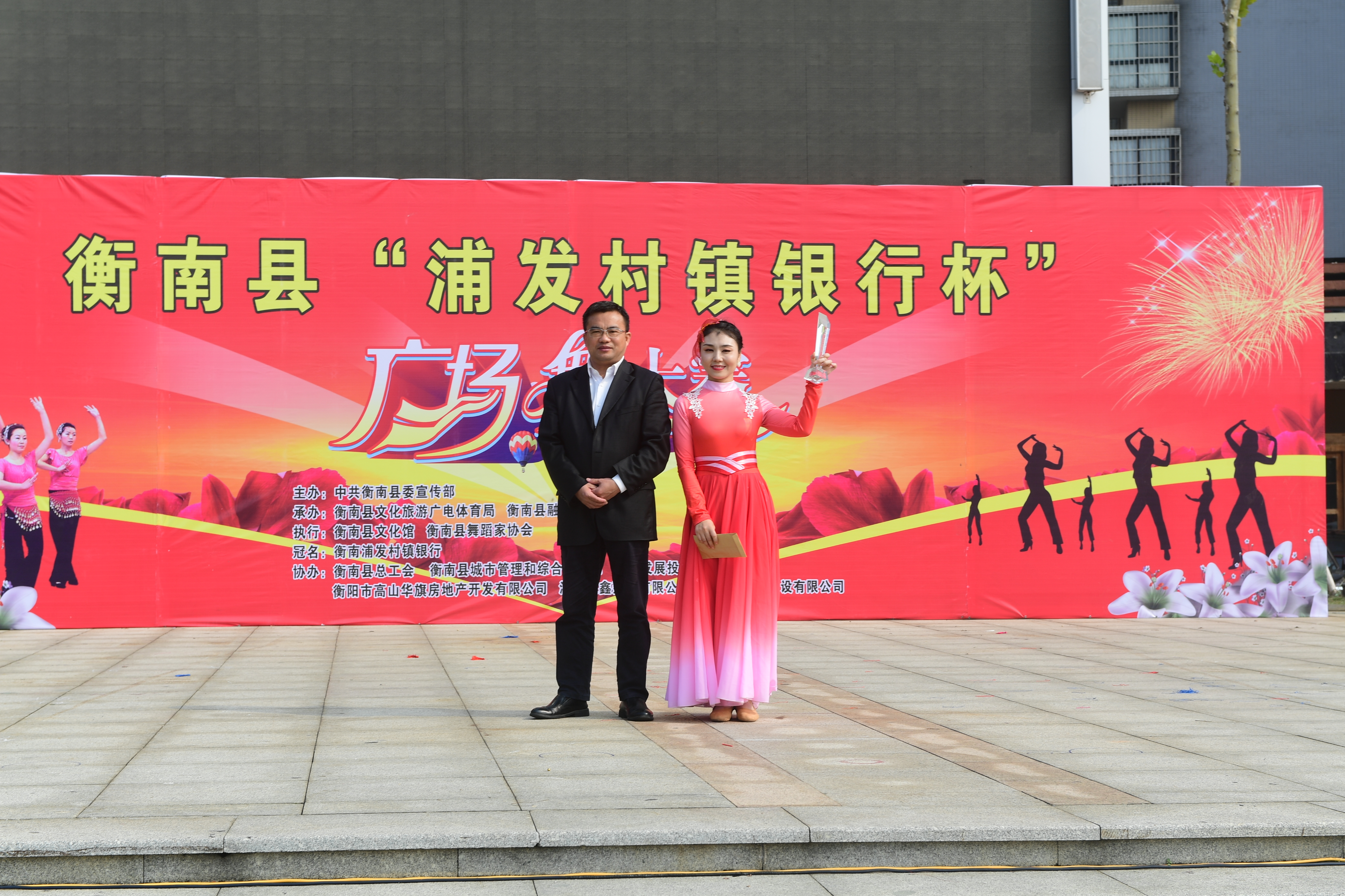 为热烈庆祝建党百年华诞,实现我县公共文化服务体系高质量发展,丰富全县群众文化生活,促进城乡精神文明建设,由中共衡南县委宣传部主办,衡南县文化旅游广电体育局、衡南县融媒体中心承办,衡南县文化馆、衡南县舞蹈家协会执行,衡南浦发村镇银行冠名并参与举办的"浦发村镇银行杯"全民广场舞大赛11月18日在县城福祥文化广场落下帷幕,本次活动既活跃了全县群众文化生活,又充分展示了地方性商业银行支持地方经济建设主力军的作用,同时也赢得了社会各界的良好口碑。