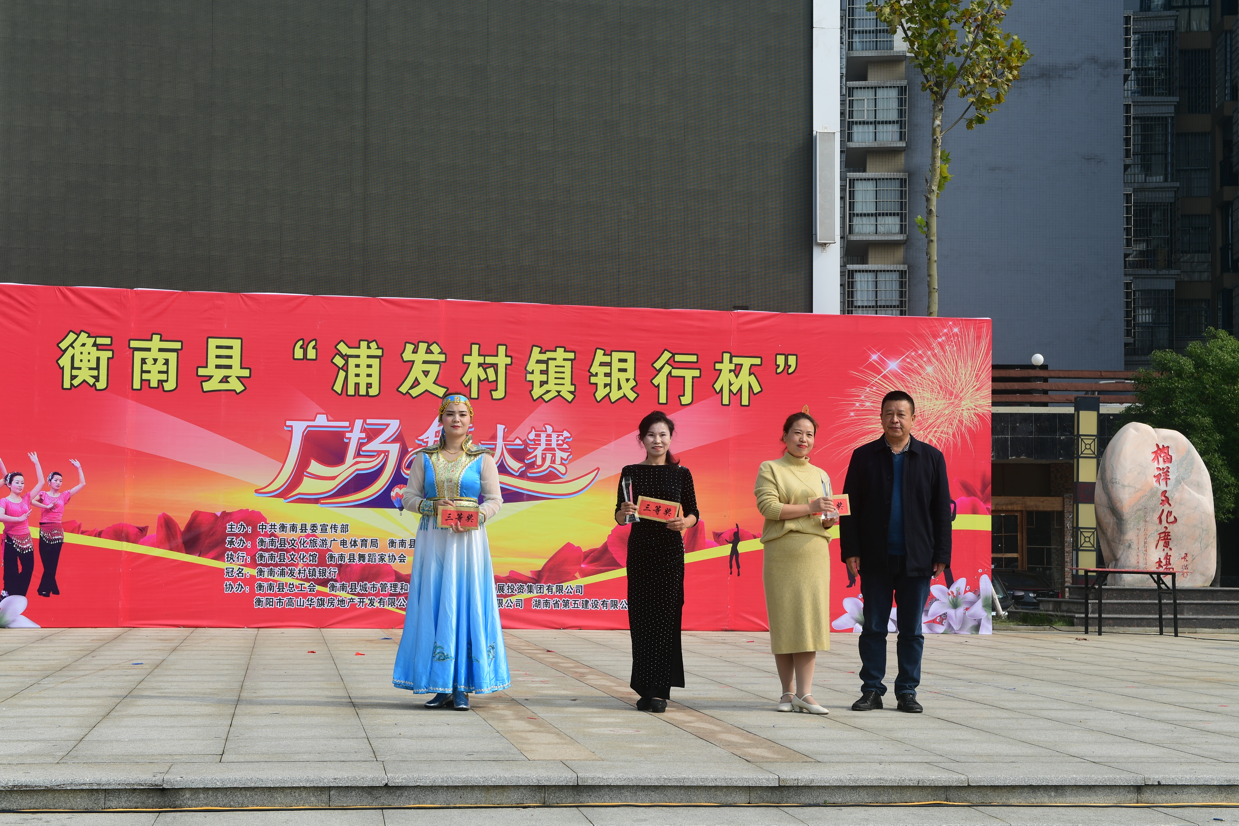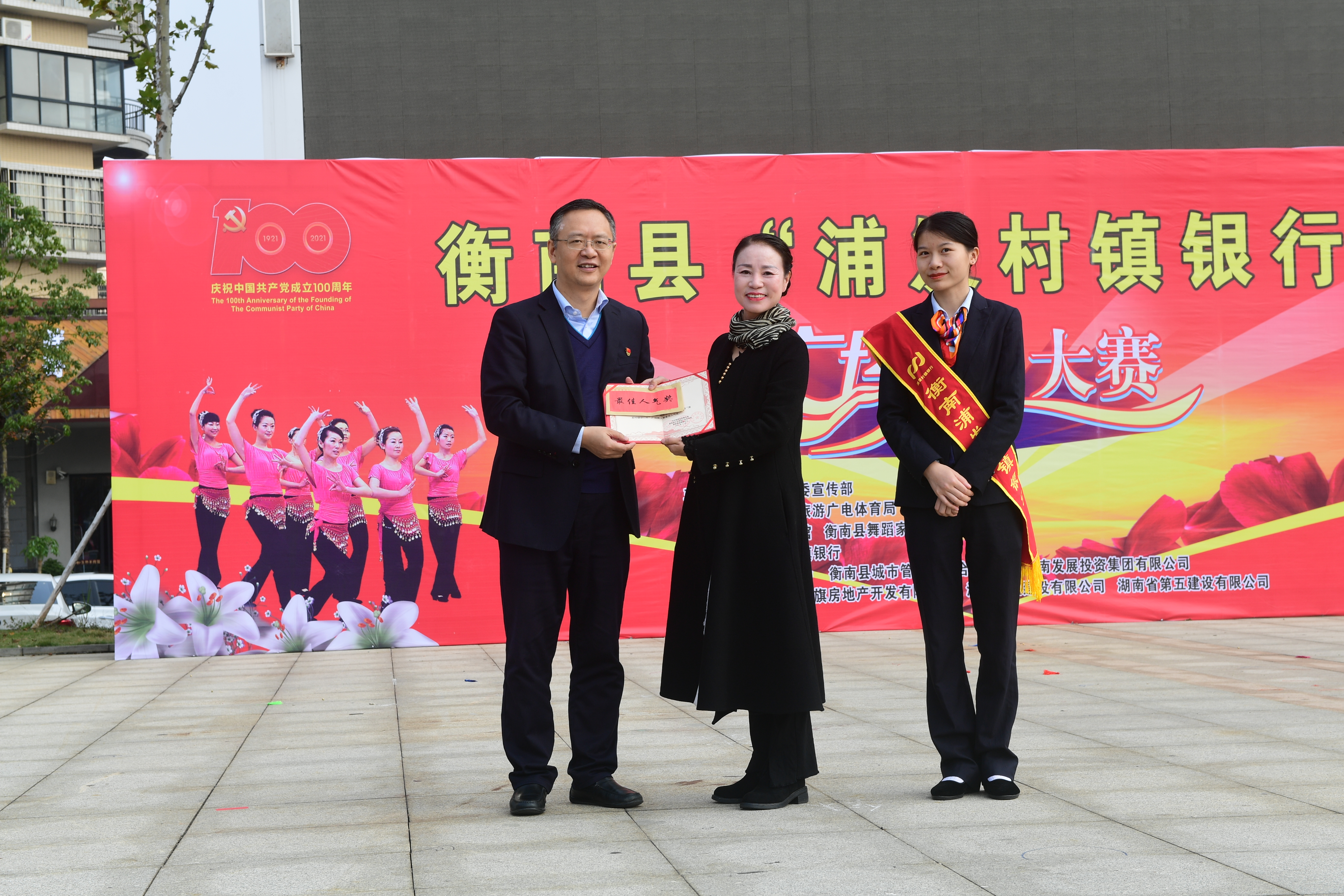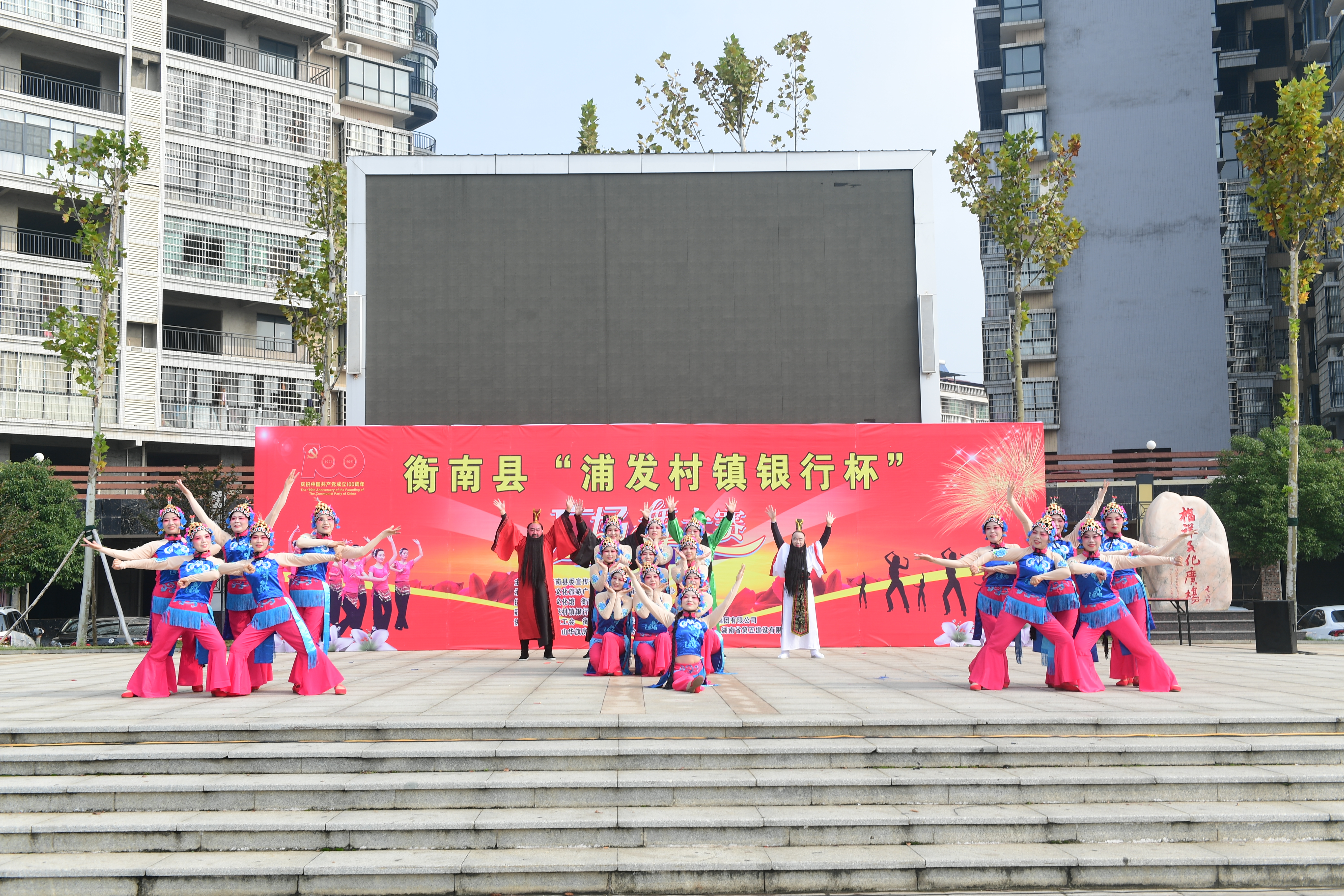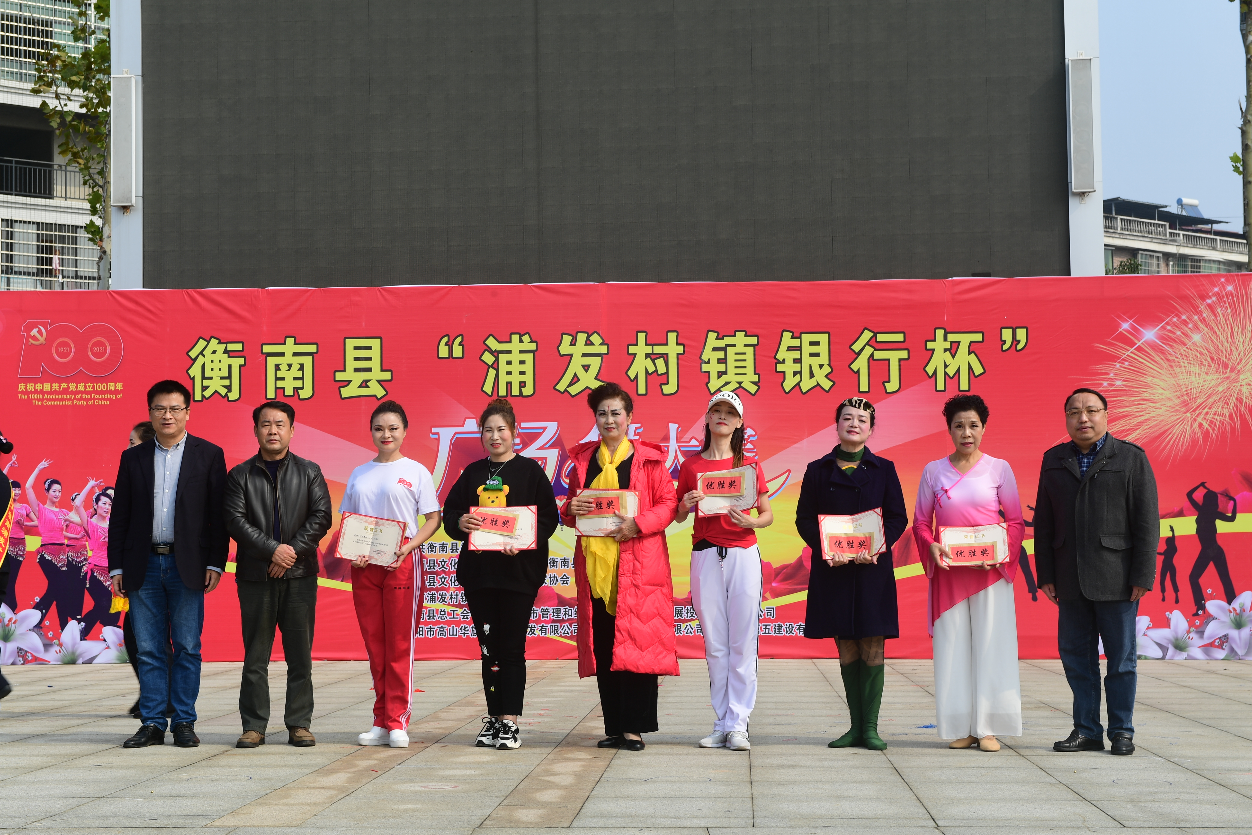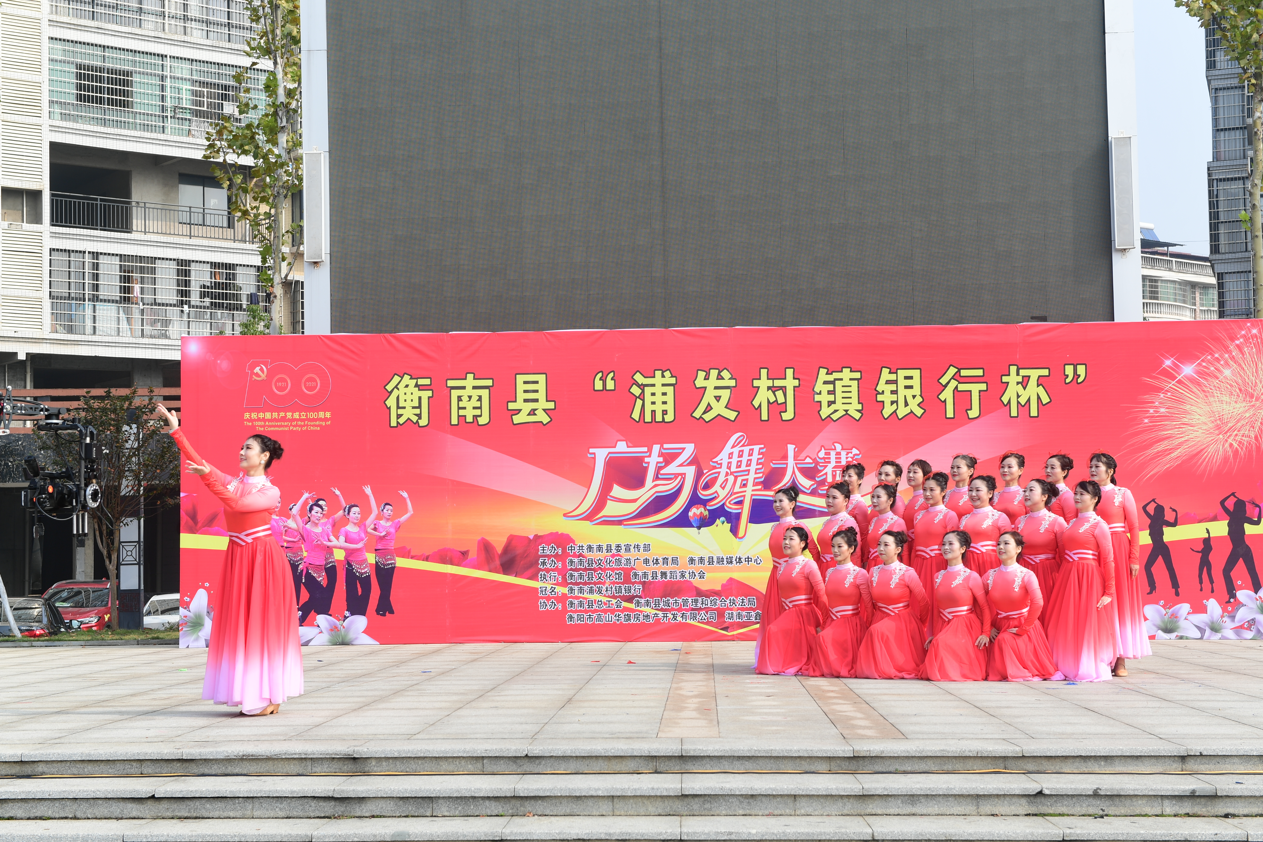 为热烈庆祝建党百年华诞,实现我县公共文化服务体系高质量发展,丰富全县群众文化生活,促进城乡精神文明建设,由中共衡南县委宣传部主办,衡南县文化旅游广电体育局、衡南县融媒体中心承办,衡南县文化馆、衡南县舞蹈家协会执行,衡南浦发村镇银行冠名并参与举办的"浦发村镇银行杯"全民广场舞大赛11月18日在县城福祥文化广场落下帷幕,本次活动既活跃了全县群众文化生活,又充分展示了地方性商业银行支持地方经济建设主力军的作用,同时也赢得了社会各界的良好口碑。