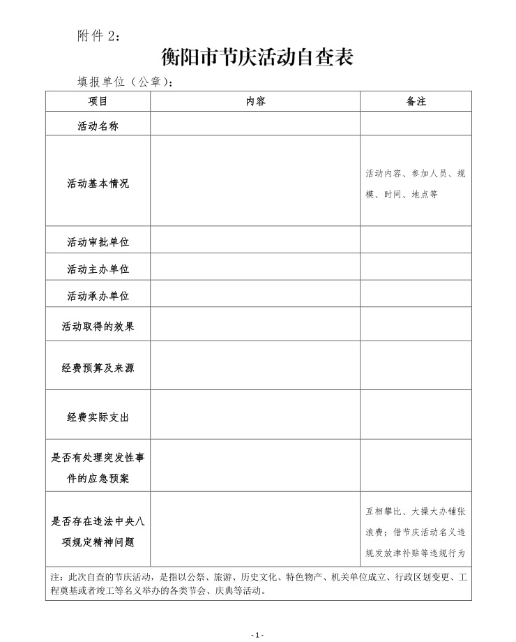 附件2:衡阳市节庆活动自查表