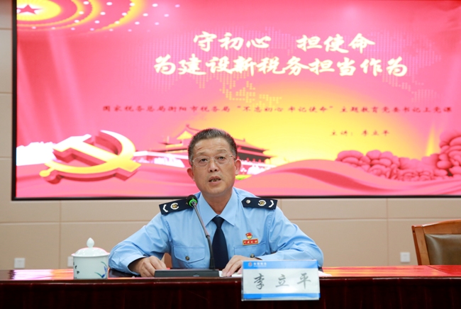 10月12日,国家税务总局衡阳市税务局党委书记、局长李立平同志紧扣“不忘初心、牢记使命”主题教育要求,讲授了一堂题为《守初心、担使命 为建设新税务担当作为》的专题党课。市局机关全体党员、各派出机构组长以上干部共计200余人听取了党课。