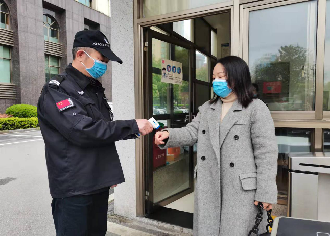 “您好,请扫描‘场所码’,测下体温”“请出示您的健康码、行程码,请戴好口罩,做好个人防护”在解放大道办公区内,衡阳市税务局疫情防控监督员统一佩戴袖章,正有序引导干部职工出入院落。