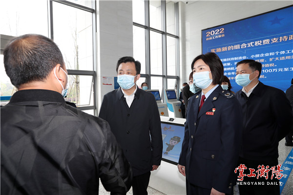 秦国文首先来到国家税务总局衡阳高新区税务局办税服务厅,详细了解办税流程、增值税留抵退税等开展情况,并与办税群众交流。秦国文表示,要进一步推进线上线下融合办税,提升便民服务水平,提高办税效率,让纳税人“少走马路、多走网路”,持续提升纳税人满意度和获得感。