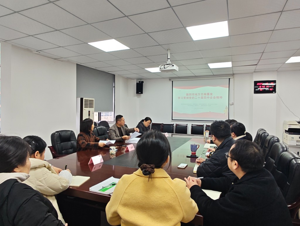 会议指出,学习宣传贯彻党的二十届四中全会精神是当前和今后一个时期的一项重大政治任务。此次宣讲对我室全面学习领会党的二十届四中全会精神提供了有力的理论遵循和行动指引,全室上下要坚持深学细悟,深刻领悟全会提出的一系列新思想、新论断、新部署、新要求;要加强宣传引导,充分利用方志馆、网站等平台载体,广泛宣传全会精神;要抓好落实,在聚焦存史、资政、育人、强基等方面,不断寻求志鉴编纂新突破、探索活化利用新路径、展现服务大局新作为、凝聚队伍建设新合力。要始终将推动衡阳地方志事业高质量发展作为履职尽责的最大追求,团结奋斗、攻坚克难、求真务实,努力在平凡的岗位创造不平凡的业绩,为谱写中国式现代化的衡阳新篇章贡献方志力量。