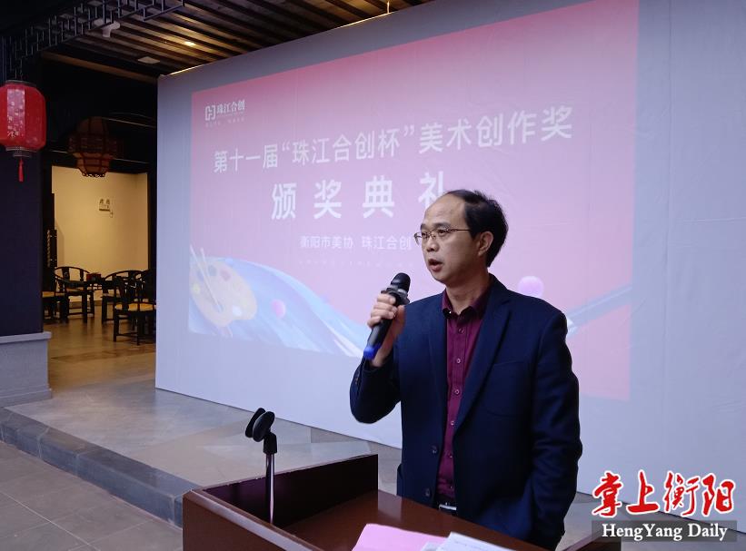 衡阳市美术家协会主席阳先顺宣读了获奖名单。他表示,衡阳市美术家协会将携手全市艺术家共同努力,提升学术水平,提高创作能力,担负起为时代而歌的历史使命。