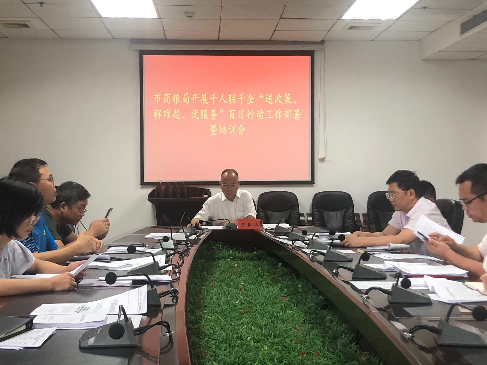 市商粮局工作组联络员周华明介绍了市"千人联千企"百日行动方案,并传达了市"千人联千企"百日行动动员暨培训会议精神,市场运行和消费促进科科长王凯对在全局开展"千人联千企"百日行动进行了安排部署并制定具体工作方案,投资管理科科长罗军对惠企政策口袋书进行了专题讲解。