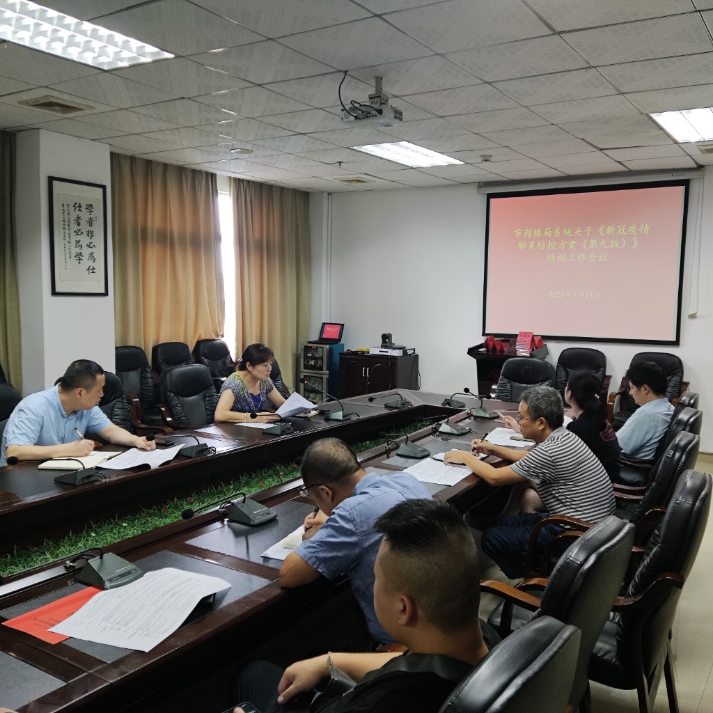 7月21日,市商粮局组织开展《新型冠状病毒肺炎防控方案(第九版)》培训工作,召开培训会议,三级调研员舒金剑主持会议。
