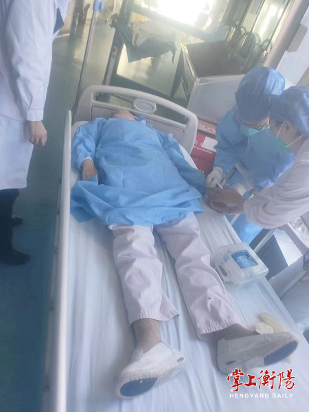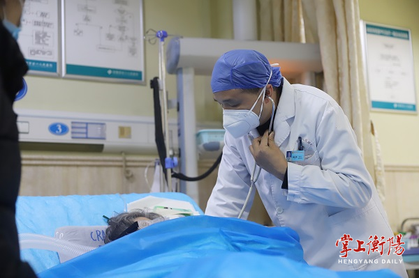 ▲急诊科副主任杨长勇正在为危重病人进行诊疗。