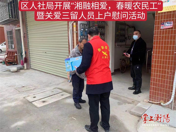 开展“维护返乡农民工权益和政策宣传”、慰问留守老人及儿童、发放返程红包补贴、收集务工创业人员信息……连日来,全市人社部门携手相关部门、邮政企业等,为各地农民工及其家人开展了一系列形式多样、务实暖心的关爱活动。至此,2023年衡阳市春节期间“湘融湘爱·春暖农民工”服务行动已全面铺开。