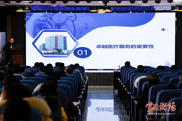 2月16日,南华大学附属第二医院党委书记李国庆教授在教学综合楼七楼开展医院卓越服务建设讲座,医院领导班子成员及职能部门、临床科室主任和护士长参加。