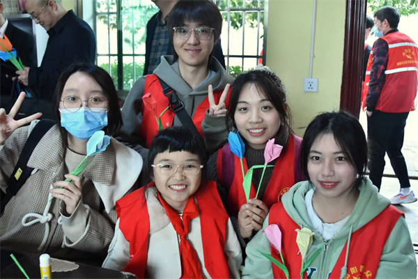 活动开始,志愿者们走进东南小学图书阅览室,与小朋友们共同制作折纸郁金香与雷锋主题纽扣画。盛放的是花朵,绽放的是孩子们天真无邪的笑脸。
