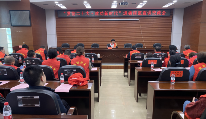 本网讯邓雯报道:“衡阳城,创文明,得民意,顺民心;价值观,要记清,守初心,担使命;遵法纪,礼待人,摒陋习,我先行;德为先,勤政廉,崇科学,拒迷信;学雷锋,济危困,扶残弱,助他人;小门店,勤创业,摆整齐,扫干净;驾车辆,勿乱停,红绿灯,依规行;投垃圾,需分类,莫乱倒,每日清……”整齐嘹亮的衡阳创文三字经诵读声从衡阳市水利局大会议室传出。3月31日上午,衡阳市水利局与高新区华兴街道祥光社区联合开展“贯彻二十大 建功新时代”道德模范宣讲交流会活动,局机关全体干部职工和局属各单位班子成员、华兴街道祥光社区“衡阳群众”100余人参加。