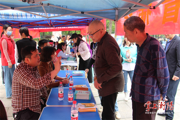 现场还设置了学雷锋志愿服务台和义诊台,来自市医疗保障局的“衡阳群众”志愿者积极协助开展政策宣讲并发放相关宣传资料;来自高新区四家医疗机构的医护人员热情地向市民朋友提供义诊服务。