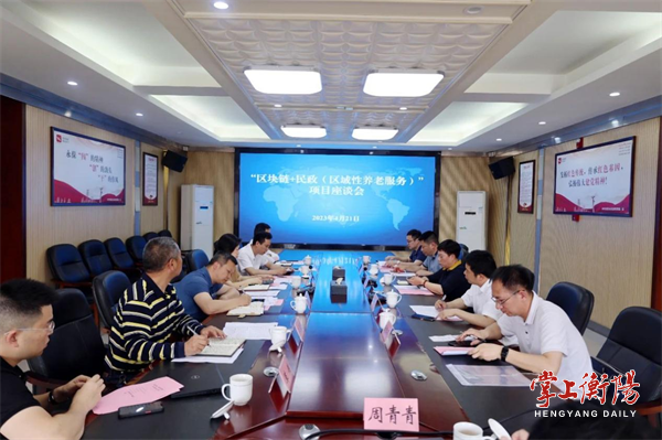 4月21日,“区块链+民政(区域性养老服务)”项目座谈会在市民政局召开。