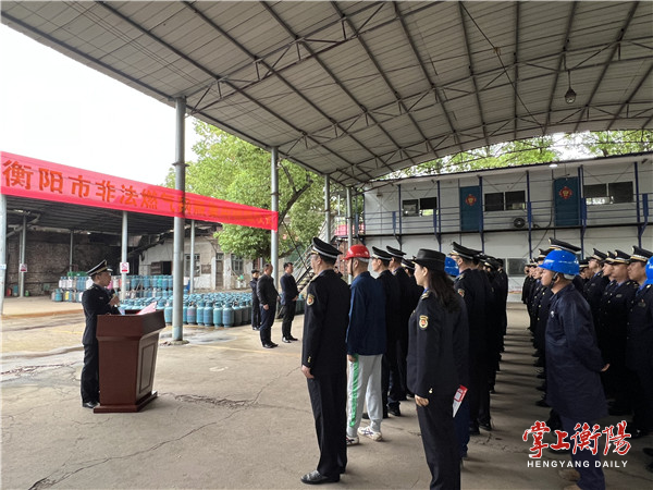 据介绍,此次销毁的非法气瓶是衡阳市城管综合执法支队日常监督执法时所查获的超期未检、报废、翻新气瓶,存在严重安全隐患。活动现场展示了非法燃气钢瓶销毁过程,珠晖区凯源检测有限公司工作人员介绍,为排除隐患,这些非法钢瓶均由专业工作人员经抽取残液、拆除钢瓶角阀、焚烧、对其消除使用功能处理,使其完全丧失储存、充装气体的功能,避免其再次流入市场。