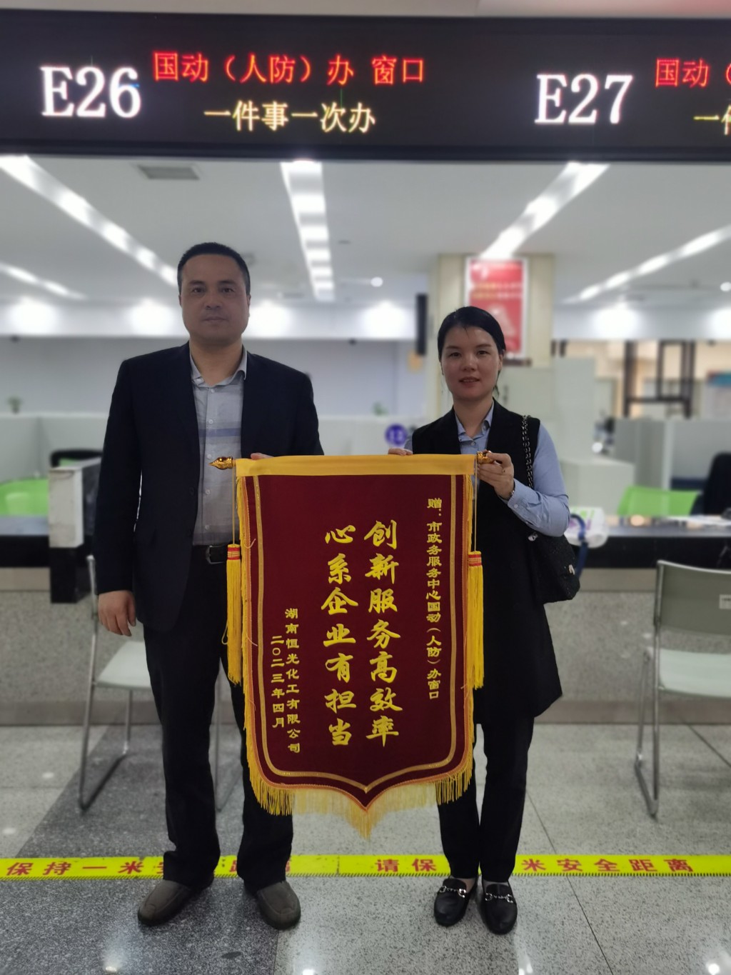 湖南恒光化工有限公司是一家以基础硫化工为平台,从事精细化工及新材料研发、制造和服务的现代化高科技企业,是湖南恒光科技股份有限公司全资子公司,是我市重点工程公司。该公司本次由于扩产新建厂房,申请办理建筑许可,衡阳市国动办(市人防办)政务服务窗口工作人员急企业之所急,想企业之所想,利用省工改系统指导服务,在2个工作日内办理了报建手续,得到该公司的高度赞扬和诚挚谢意。