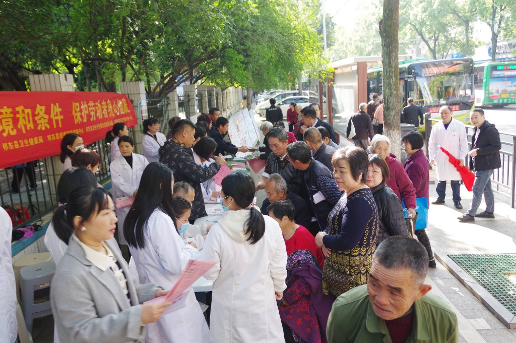 4月26日,祁东县卫生计生综合监督执法局同县卫生健康局、县疾控中心、洪桥街道社区卫生服务中心在县城街心公园,联合宣传《中华人民共和国职业病防治法》及相关法律法规,普及职业卫生知识。工作人员悬挂“改善工作环境和条件,保护劳动者身心健康”的宣传横幅1条,设置了《中华人民共和国职业病防治法》及相关知识展板2块,设置咨询台3张,向群众发放职业病防治法律法规及职业病防治知识宣传册500余本、宣传单1000余张、折页2000余份,为群众免费测量血压100余人,接受群众关于职业病预防、诊断、治疗、职业病病人的待遇和社会保障政策等咨询200余人次。