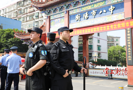 儿子高考我执勤,守护大家也守护你。雁峰交警大队四中队民警黄江波早早来到市八中考点执勤。黄白路另一头的衡阳市五中考点内,他的儿子正在参考。黄江波说,希望包括自己孩子在内的每一位考生,都能取得优异成绩。在常宁市二中考场外,常宁市公安局巡特警大队大队长管春茂全副武装,内心却和所有的家长一样有些紧张,因为儿子正在参考。上午考试结束后,不少家长都走上前和孩子或拥抱或击掌,而管春茂却在执勤地点挪不开步,父子两人在考点门口擦肩而过。直到结束执勤,父子俩才胜利会师合影留念。