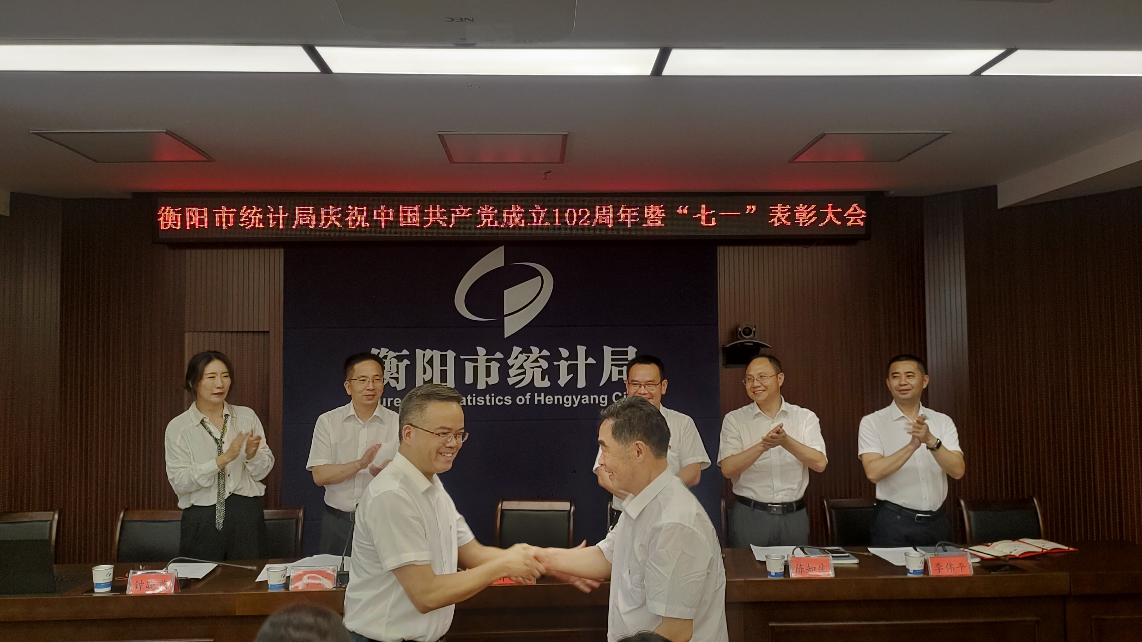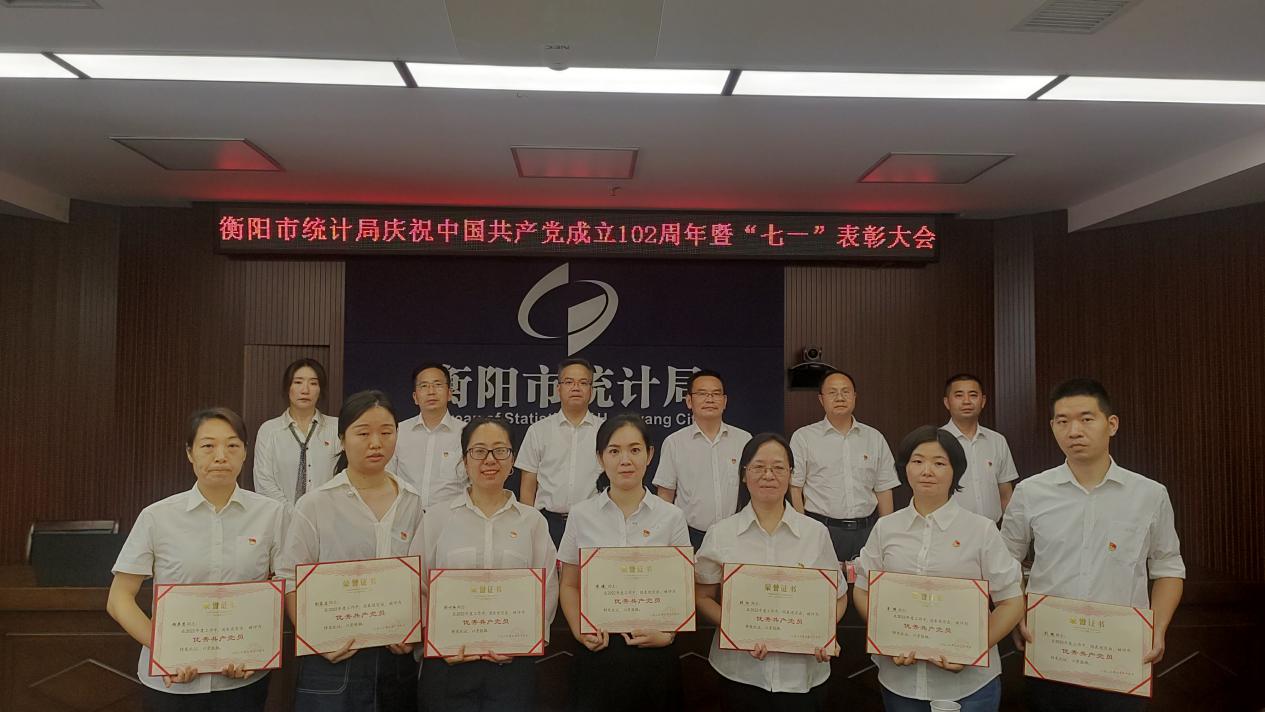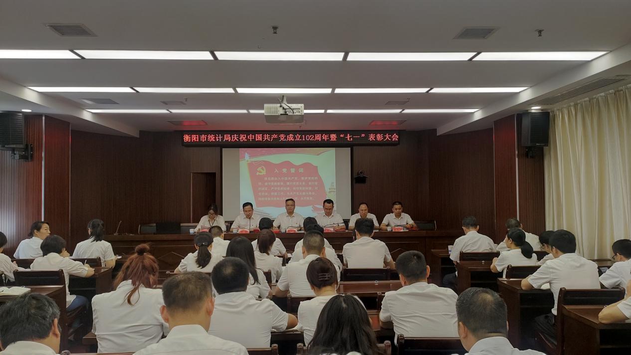 6月29日下午,衡阳市统计局隆重举行庆祝中国共产党成立102周年暨"七一"表彰大会。党组书记、局长郭松青作了总结讲话,全局干部职工及退休老党员代表参加了会议。