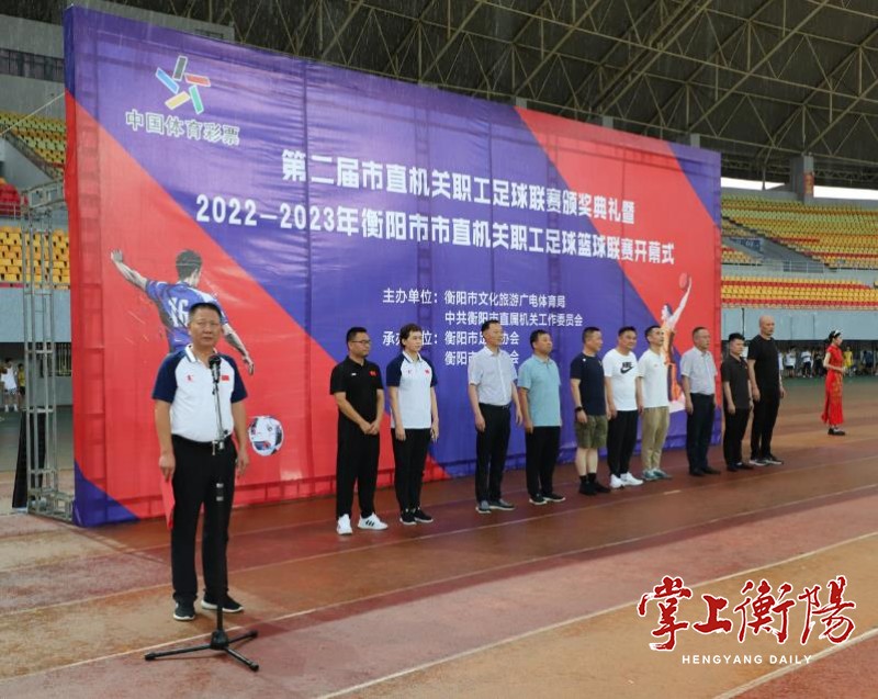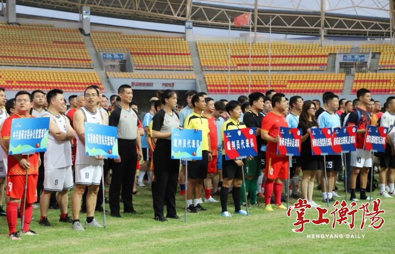 7月21日晚,2022-2023年衡阳市市直机关职工足球篮球联赛开幕式在市体育中心举行。来自各市直机关28支代表队伍、上千名运动员整装待发,以球会友,赛出新时代干部职工风采。