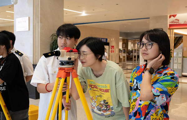铁道工程学院的黄小兵等教师组织天佑测量协会、党支部等,携带无人机、测绘水准仪、全站仪等仪器,来到衡阳市图书馆与学校共建的社区学院,进行测量技术宣传和仪器操作。在图书馆内,身着统一制服的高铁学院同学,结合自身所学的专业知识,向前来图书馆参观的市民们科普仪器的使用方法,现场操作无人机作业,引来众多市民驻足观看。在师生的指导下,市民们现场操作测量仪器,进一步了解相关知识。