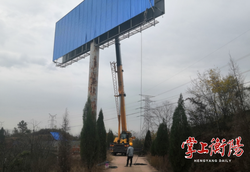 12月12日,记者从市交通运输局获悉,我市高速公路“三保三大”专项整治行动又有新战果,衡阳市交通运输综合行政执法支队高速路政执法大队联合高速公路经营管理相关单位,依法拆除衡邵高速和许广高速6块非法大型广告牌。