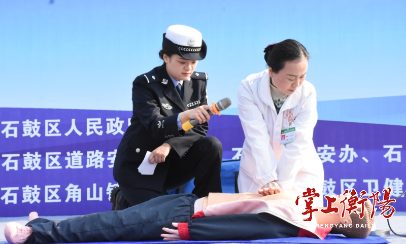 “‘一盔一带’是指什么?”“多少岁才可以驾驶电动自行车?”……活动设置了有奖知识问答,村民争先恐后举手回答,赢取小礼品的同时将交通安全知识铭记于心。交通事故急救演示中,医生采取边讲解边演示的方式,利用仿真模拟人进行了“教科书式”急救,村民目不转睛地盯着医生的一举一动,不时发出感叹“原来是这样操作”。