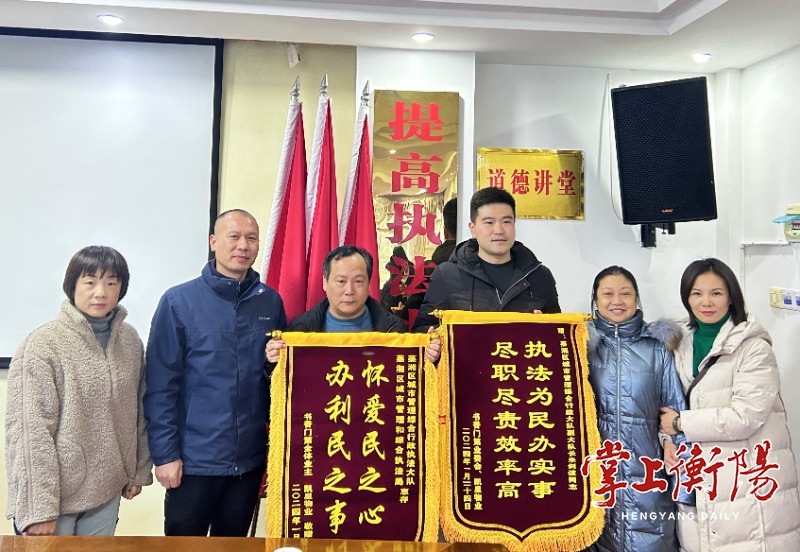 “我们是书香门第小区的业主,感谢蒸湘区城管执法局为民办实事。”1月26日上午,蒸湘区书香门第小区4名业主代表手执两面锦旗特地赶到蒸湘区城管执法局,感谢城管执法部门情系百姓解民忧,为执法队员点赞。
