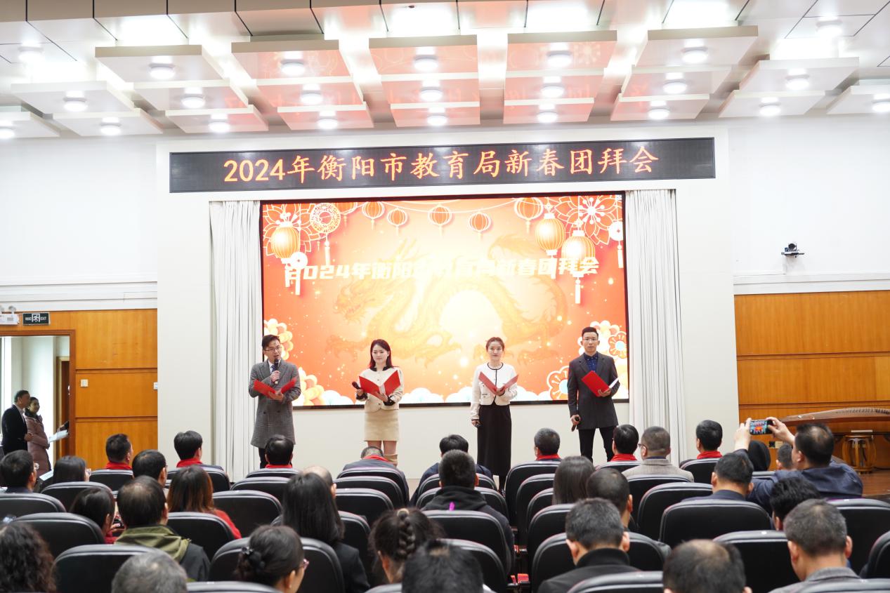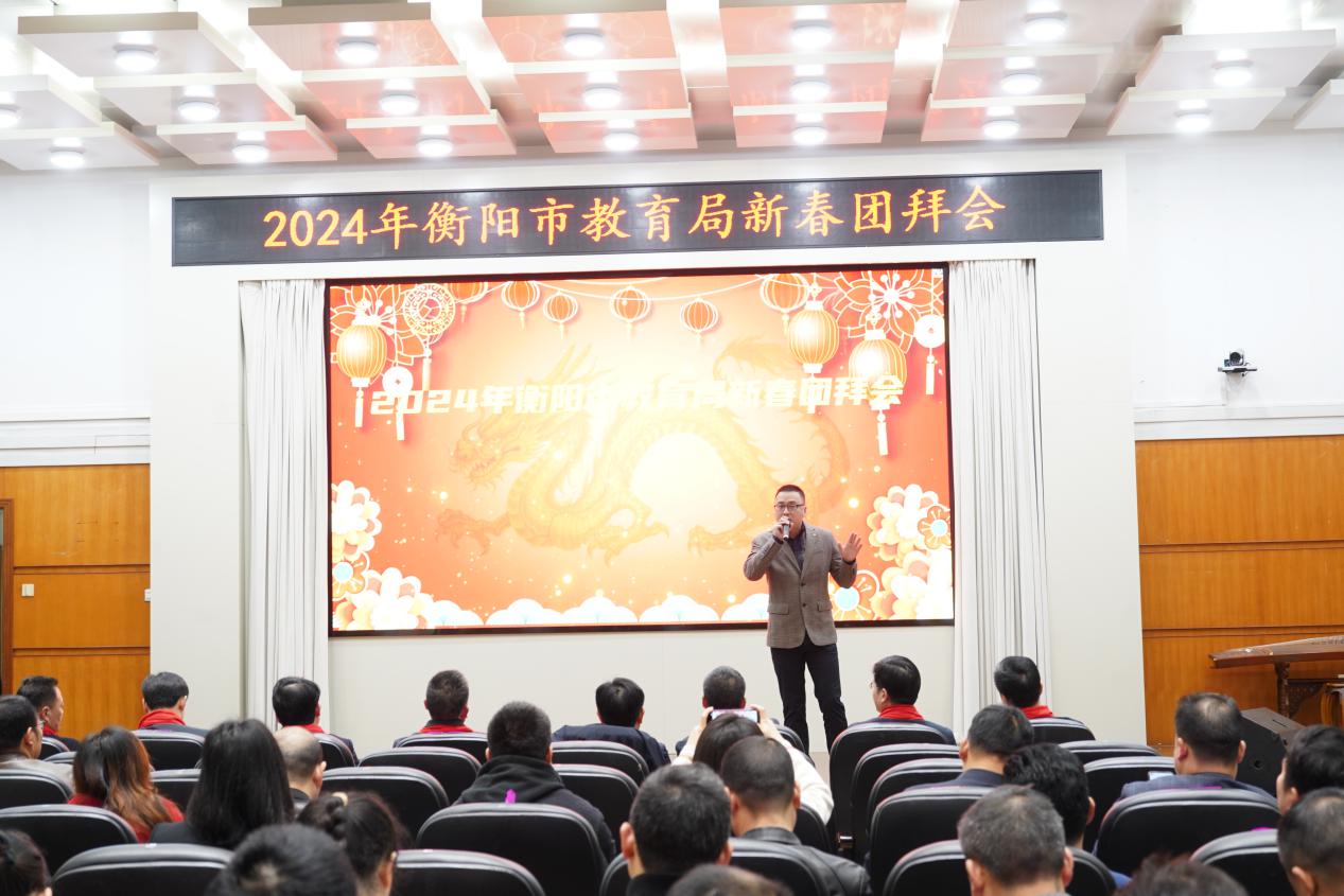 2月18日,甲辰龙年春节后的首个工作日,衡阳市教育局举办2024年新春团拜会,全体机关干部职工欢聚一堂,共续教育情怀,共谋教育发展。衡阳市教育局党组书记、局长程少平出席团拜会并讲话。局领导班子成员、副处以上领导、机关全体干部职工参加团拜会。