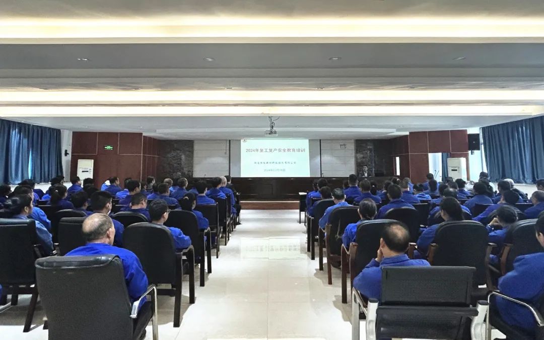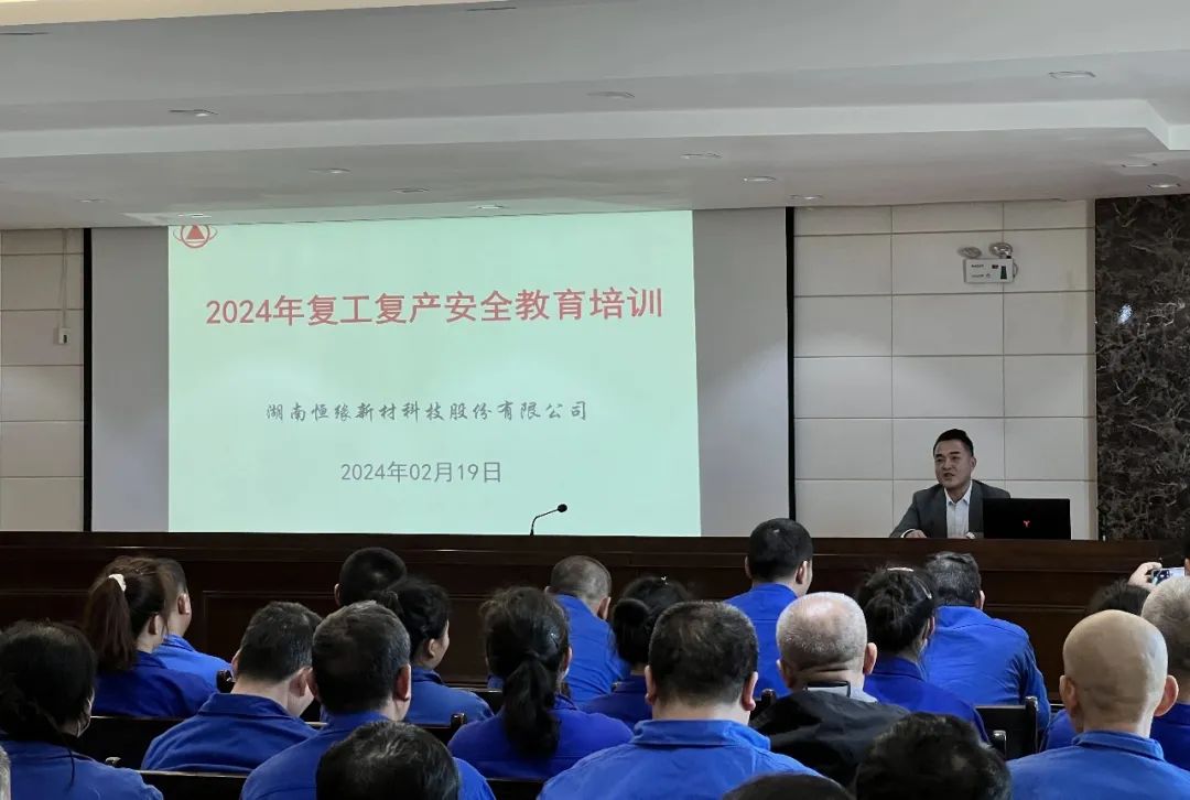 为贯彻落实省、市、松木经开区有关开展“开工第一课讲安全”活动的要求,2月19日,湖南恒缘新材科技股份有限公司举行2024年复工复产安全教育培训,公司各部门、车间共106人参加培训,松木经开区安全生产监管局参与监督并作工作要求。