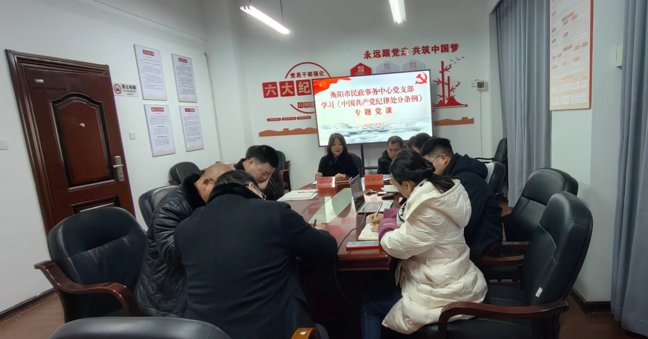 2月26日上午,衡阳市民政事务中心举行《中国共产党纪律处分条例》(以下简称《条例》)专题学习活动,中心党支部书记、主任凌樱主持学习。