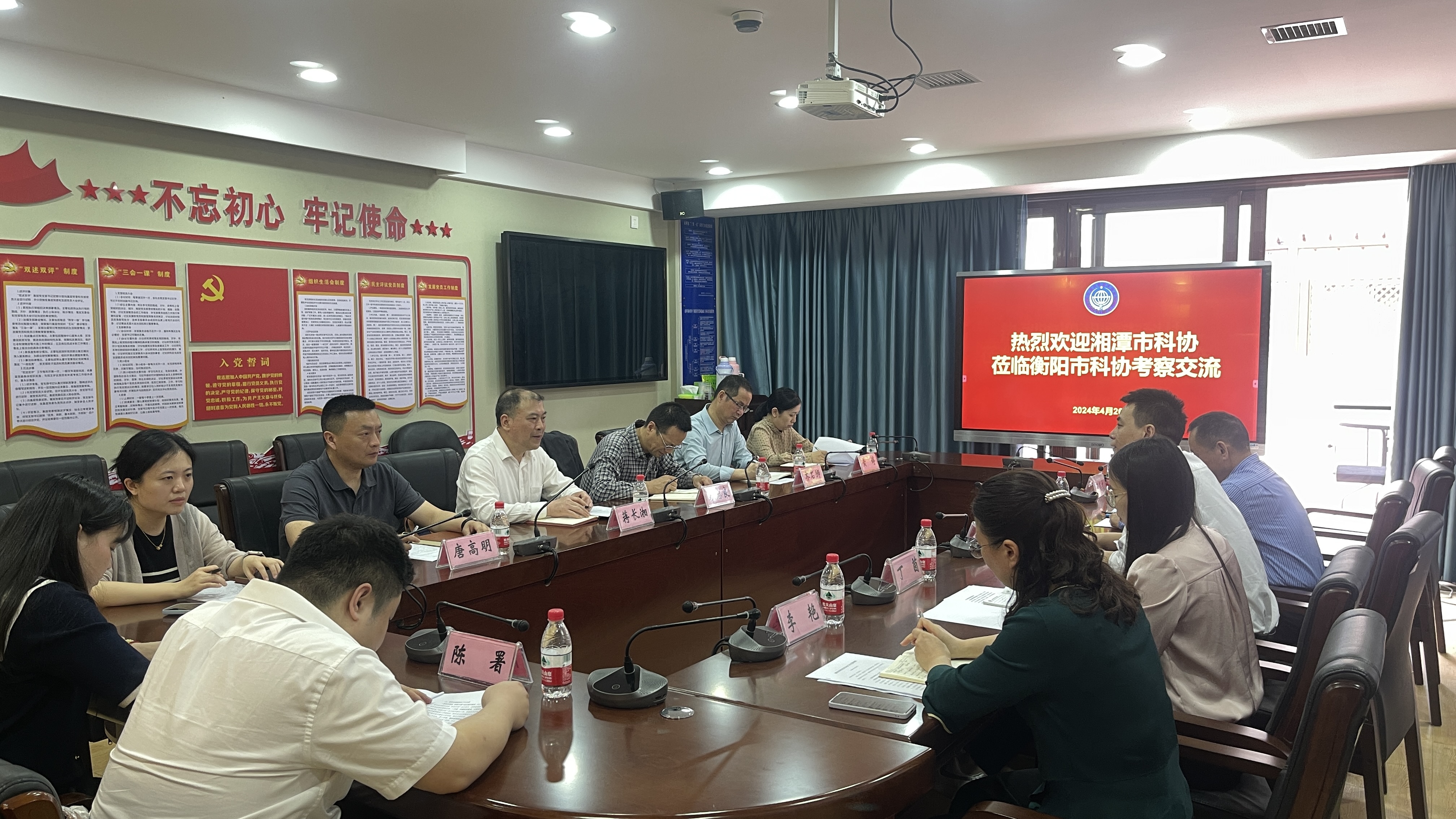 4月26日,湘潭市科协党组成员、副主席蒋长湘一行10人到市科协考察交流相关工作,市科协党组书记、副主席周湘晖,市科协党组成员、副主席李平陪同。