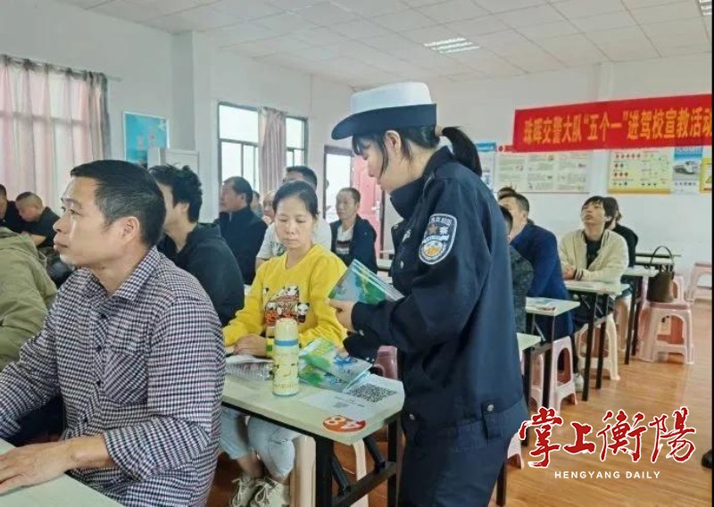 衡南县交警、衡阳县交警走进农村,通过播放典型事故案例警示教育片、发放交通安全宣传资料、面对面讲解等方式,向老年群众普及出行安全常识。同时结合辖区交通事故案例,重点宣讲步行安全、一盔一带等交通安全知识,让大家知道“被看见”才能拥有“大安全”。常宁市交警走进环卫所,结合播放的典型交通事故案例剖析事故原因,警示教育大家在日常工作时要坚决杜绝闯红灯、随意横穿马路、破坏交通隔离栏随意穿行、骑行不戴安全头盔等交通违法行为,并提醒大家在恶劣天气下工作时要加大交通安全防护措施,规范穿戴反光衣帽,作业时以保障自身安全为前提,增强“知危险、会避险”的自我保护意识,避免交通事故的发生。