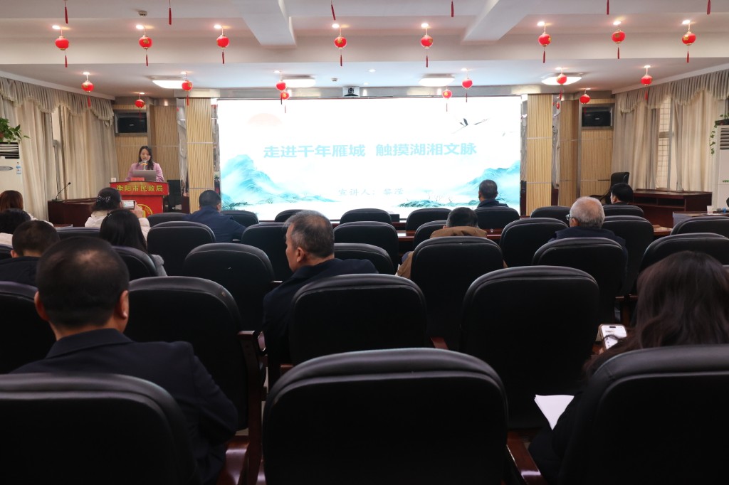 12月12日下午,衡阳市民政局举办2024年第十七期“民政讲堂”,市第二福利院黎滢同志就衡阳历史文化作了交流分享。全体在家局领导、机关干部职工及局属单位负责人参加活动。