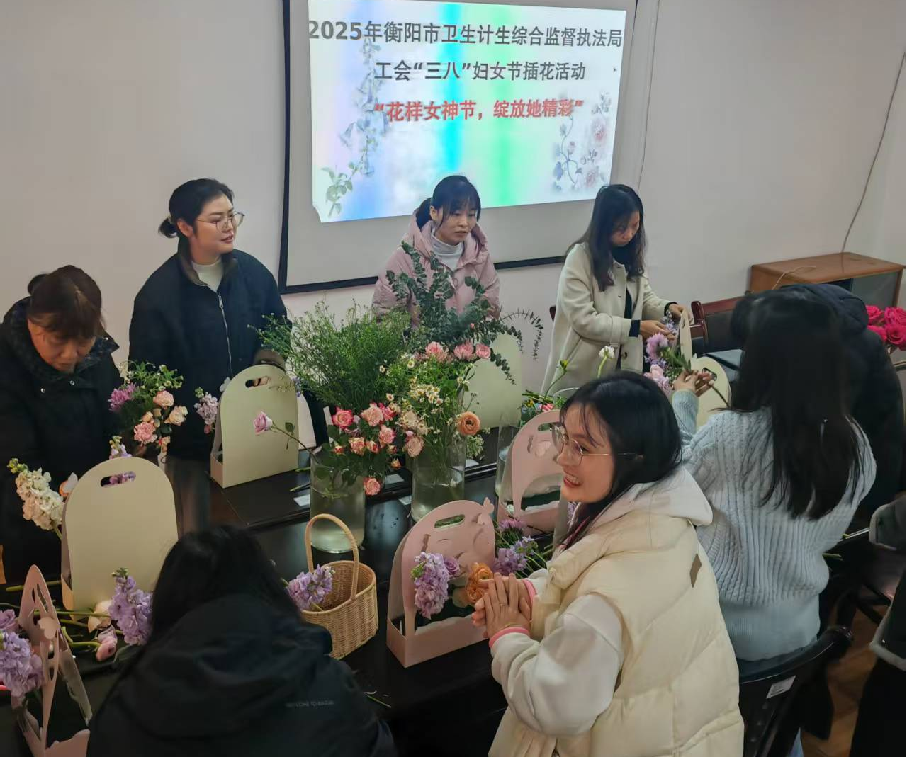 3月14日,为庆祝第115个“三八”国际妇女节,丰富单位女职工精神文化生活,衡阳市卫生计生综合监督执法局工会精心组织了一场以“花样女神节,绽放她精彩”为主题的插花活动,用美丽的鲜花对职工致以美好的祝福。