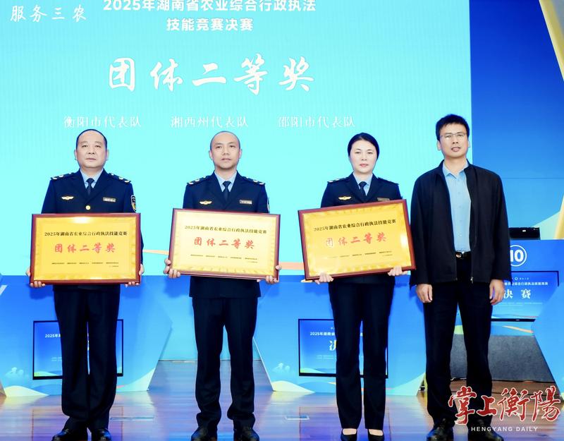 9月23日至25日,在长沙举办的2025年全省农业综合行政执法技能竞赛中,衡阳市代表队表现抢眼,勇夺团体二等奖,队员李燕清、方慧分获“综合技能突出奖”与“巾帼风采奖”。