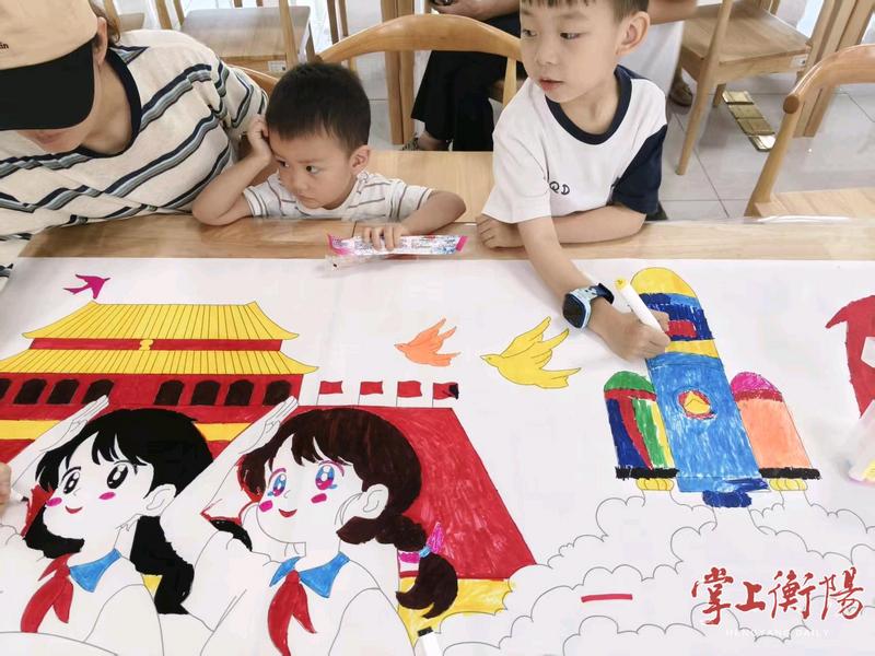 此后几日,精彩活动接连不断。2日,孩子们通过视频讲解和手工制作,了解中国传统建筑文化,认识屋顶神兽鸱吻的起源、演变、功能及寓意,激发对中国传统文化的兴趣与热爱;3日“桂花邀明月,童行共团圆”活动中,孩子们与父母听绘本学中秋习俗、做月亮灯,满室温馨;4日,巨幅长卷铺开,亲子家庭携手挥毫,红色的五星、金黄的圆月跃然纸上,孩子们用画笔诉说对祖国的祝福;5日的“月亮的影子”亲子故事汇上,家长与孩子共读绘本,“嫦娥奔月”的传说在轻声讲述中传递着传统文化魅力……8日举办的“解锁双语阅读魔法”活动,通过趣味双语阅读,帮助家长与孩子了解语言发展规律,共享亲子共读乐趣。