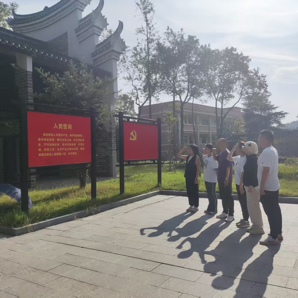“我志愿加入中国共产党……”,在旧址的党旗前,全体党员庄严地举起右手,重温入党誓词。铿锵有力的誓言回荡在旧址上空,表达了同志们继承先烈遗志、永葆政治本色、为党和人民事业奋斗终身的坚定决心。