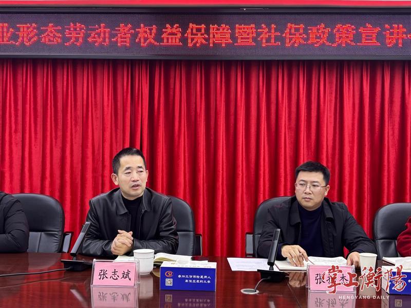12月5日上午,市人社局联合美团举办衡阳市新就业形态劳动者权益保障暨社保政策宣讲会,磋商美团骑手养老保险补贴在衡落地方案,研究探讨新就业形态职业伤害保障。