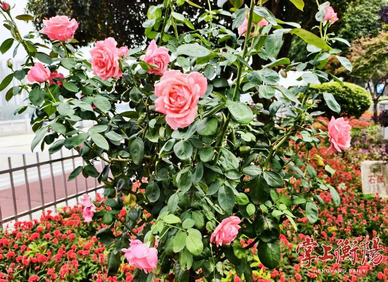 12月15日下午,解放路观景台中心花坛“春意盎然”。十余位园林工俯身挥锄,松土、落苗、培土、抚平,动作行云流水。不一会儿,连片花卉已在寒风中昂首挺立,红黄交织,层层叠叠,与周边的树状月季、红枫等相映成趣,烘托出浓浓的喜庆氛围。