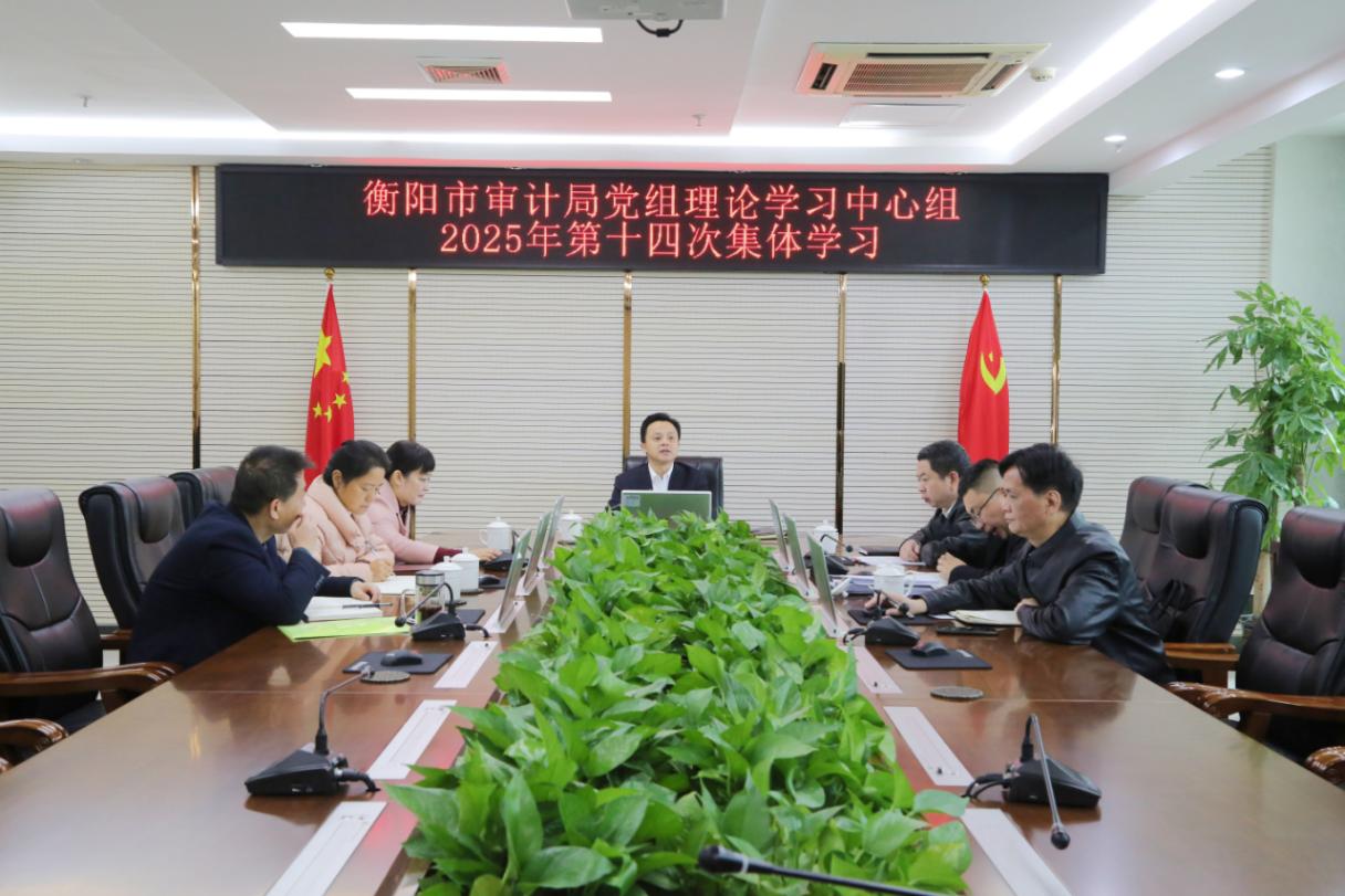 12月18日,衡阳市审计局党组理论学习中心组举行2025年第十四次集体学习,市委审计办主任,局党组书记、局长邱小兵主持并讲话。全体中心组成员及相关科室负责人参加学习。