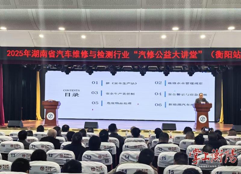 12月25日,在市技师学院,一场别开生面的“汽修公益大讲堂”火热开讲。这场由湖南省道路运输管理局指导、省汽车维修与检测行业协会主办,衡阳市道路运输服务中心等单位协办的活动,吸引了我市200余家汽修企业负责人、技术骨干参加。