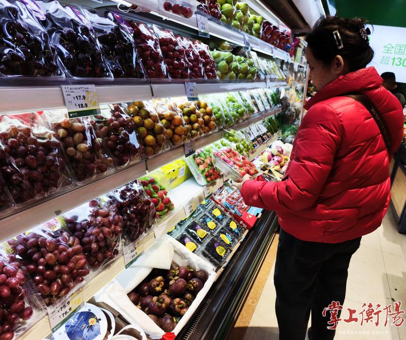 1月1日,在蒸阳南路一家水果店内记者看见,一件件新上市的智利车厘子整齐码放,个大红润的草莓则摆放在店内的醒目位置,“这批车厘子刚到,甜度高、汁水足,口感好。”店员一边麻利地分装新到货的智利车厘子,一边向顾客热情推介。