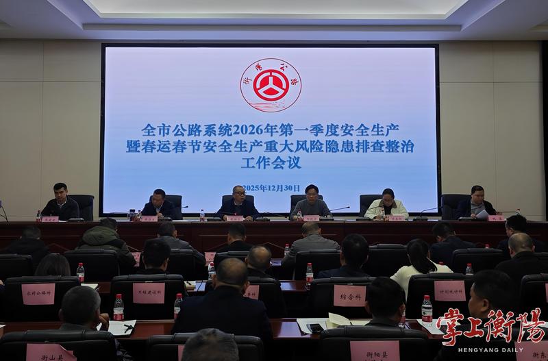 2025年12月30日,市公路建设养护中心召开2026年第一季度安全生产暨春运春节安全生产重大风险隐患排查整治工作会议。市公路建设养护中心主任张兴二出席会议并讲话。